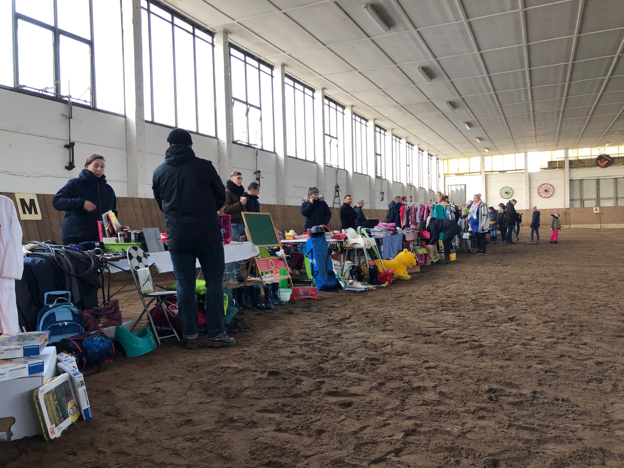 Am 19.Januar fand auf der Reitanlage „Max Fröhlich“ der erste Reit- und Kinderflohmarkt statt. Und wir waren begeistert, wie gut er angenommen wurde. Ab 12Uhr kamen immer wieder Besucher in die Reithalle um an den zahlreichen Ständen das ein oder andere Schnäppchen zu ergattern.